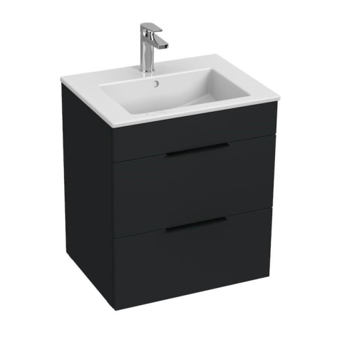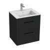 Falra szerelhető fürdőszobai szekrény antracit színű kerámia mosdóval, matt kivitelben, méretei 55x43x62,2 cm. Laminált felület. Egy csavarral.