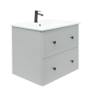 Felakasztható fürdőszobaszekrény kerámia mosdóval szürke színben matt felülettel mérete 60x53x46 cm. A felület fólia kivitelben.