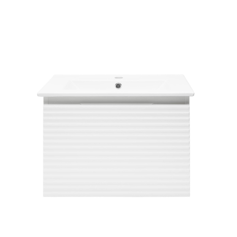 Függesztett fürdőszobai szekrény kerámia mosdóval, fehér fényes színben. 58x43x44,8 cm méretű fényes felülettel. Laminált felület.