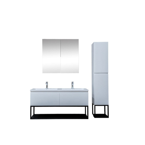 Falra szerelhető fürdőszobai szekrény öntött márvány mosdóval, fehér színben, fényes kivitelben. Laminált felület.