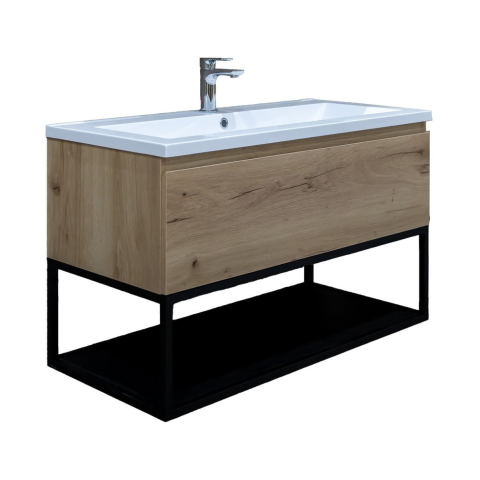 Falra szerelhető fürdőszoba szekrény öntött márvány mosdóval, tölgy dekorral, matt felülettel. Laminált felület.