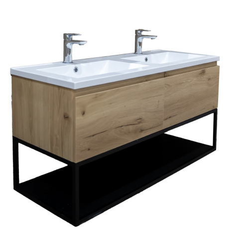 Falra szerelhető fürdőszoba szekrény öntött márvány mosdóval, tölgy dekorral, matt felülettel. Laminált felület.