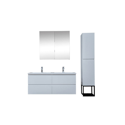 Falra szerelhető fürdőszoba szekrény öntött márvány mosdóval, fehér szín, fényes felülettel. Laminált felület.