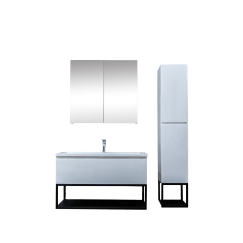Falra szerelhető fürdőszobai szekrény öntött márvány mosdóval, fehér fényes kivitelben. Laminált felület.