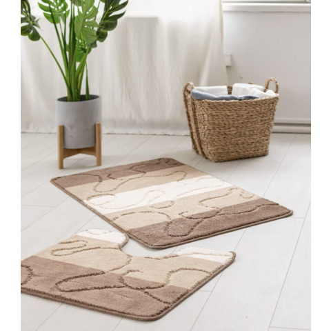 Fürdőszoba szőnyeg Extra Nagy barna vonalas 2 részes 60x100cm lakástextília termékleírás