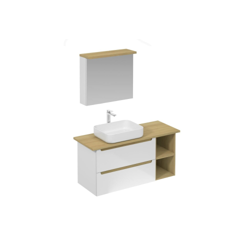 Falra szerelhető fürdőszoba szett kerámia mosdóval fehér színben, fényes felülettel, fóliázott felülettel. Teljes kiterjesztéssel és eléréssel.