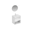 Falra szerelhető fürdőszoba szett kerámia mosdóval fehér színben, fényes felülettel, fóliázott felülettel. Teljes kiterjesztéssel és eléréssel.