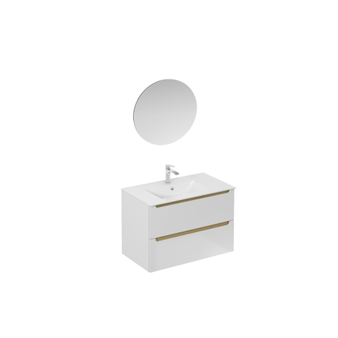 Falra szerelhető fürdőszoba szett kerámia mosdóval fehér színben, fényes felülettel, fóliázott felülettel. Teljes kiterjesztéssel és eléréssel.