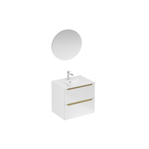 Falra szerelhető fürdőszoba szett kerámia mosdóval fehér színben, fényes felülettel, fóliázott felülettel. Teljes kiterjesztéssel és eléréssel.