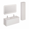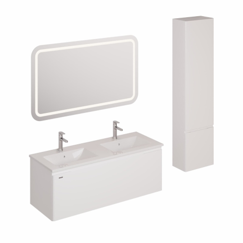 Falra akasztható fürdőszobagarnitúra kerámia mosdóval, fehér színben, fóliázott felülettel. Teljes kiterjesztéssel és eléréssel.