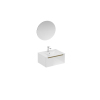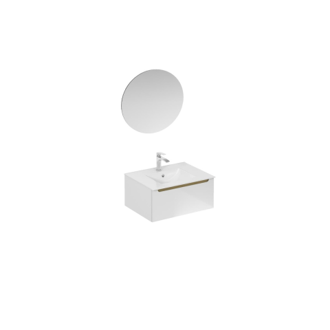 Falra szerelhető fürdőszoba szett kerámia mosdóval fehér színben, fényes felülettel, fóliázott felülettel. Teljes kiterjesztéssel és eléréssel.