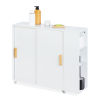 Fürdőszobai szekrény tolóajtókkal 62 x 19,5 x 64 cm A gurulós szekrény a fürdőszoba tökéletes bútordarabja, hogy szűk fülkékben és sarkokban is tárolóhelyet teremtsen. A 4 rekeszes keskeny polc elegendő helyet biztosít a kozmetikumok, tisztítószerek és eg