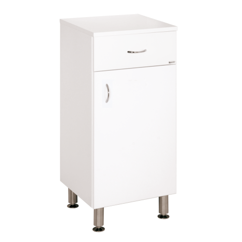 Álló fürdőszobaszekrény alacsony fehér színben fényes felülettel mérete 35x79x33,3 cm. Lakkozott felülettel.