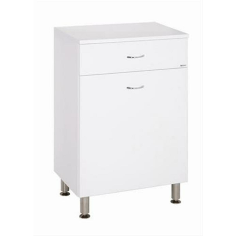 Álló fürdőszobaszekrény alacsony fehér színben fényes felülettel mérete 50x79x33,3 cm. Lakkozott felülettel. ruháskosár
