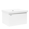 Felakasztható fürdőszobaszekrény kerámia mosdóval fehér színben fényes felülettel mérete 80x46 cm. A felület fólia kivitelben.