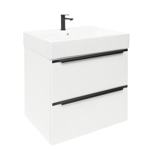 Felakasztható fürdőszobaszekrény kerámia mosdóval fehér fényes színben fényes felülettel mérete 60x60x46 cm. A felület lamino kivitelben.