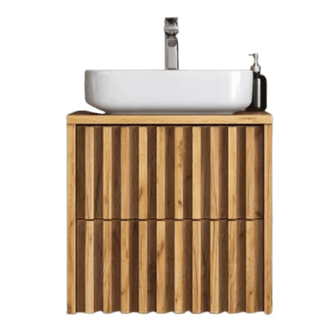 Falra szerelhető fürdőszobai szekrény fedőlemezzel tölgyfa dekorral, matt felülettel, 60x46 cm méretben. Laminált felület.