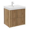 Felakasztható fürdőszobaszekrény kerámia mosdóval tölgyfa dekorban matt felülettel mérete 60x46 cm. A felület fólia kivitelben.