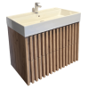 Felakasztható fürdőszobaszekrény kerámia mosdóval tölgyfa dekorban matt felülettel mérete 60x56x46 cm. A felület lamino kivitelben.