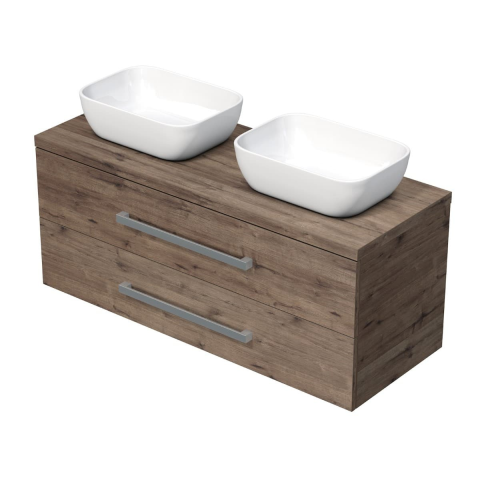 Felfüggesztett fürdőszobaszekrény kerámia mosdókagylóval, tölgyből wellington matt kivitelben, méretek 120x53x46 cm. Felület laminált.