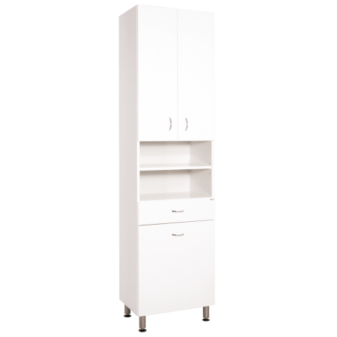 Álló fürdőszobaszekrény magas fehér színben fényes felülettel mérete 50x192x33,3 cm. Lakkozott felülettel. ruháskosár