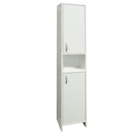 Álló fürdőszobaszekrény magas fehér színben matt felülettel mérete 33,5x180,5x25,5 cm. A felület lamino kivitelben.