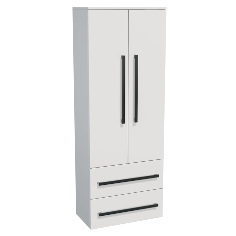 Felakasztható fürdőszobaszekrény magas fehér színben fényes felülettel mérete 60x163x33 cm. A felület lamino kivitelben. Lassú záródással.