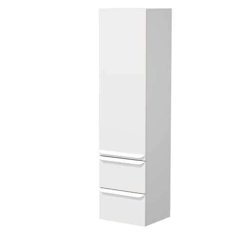 Felakasztható fürdőszobaszekrény magas fehér színben matt felülettel mérete 40x155x35 cm. Lakkozott felülettel, ujjlenyomat elleni kezeléssel. Lassú záródással.