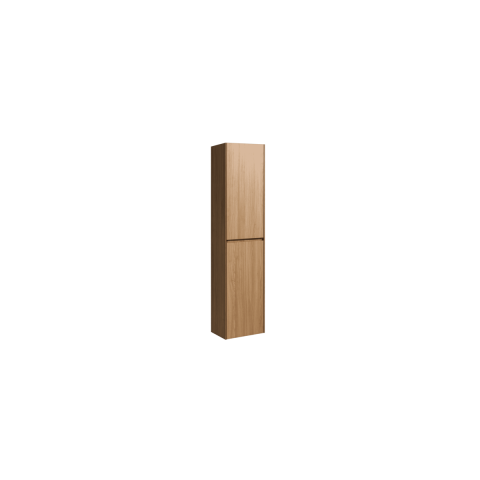 Felakasztható fürdőszobaszekrény magas világos fa dekorban mérete 40x170x30 cm. A felület lamino kivitelben. Lassú záródással.