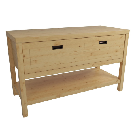 Álló fürdőszobaszekrény a mosogató alatt barna színben mérete 120x72,5x51 cm. Tömörfa felülettel. Teljes kihúzás behúzással, mosdó nélkül