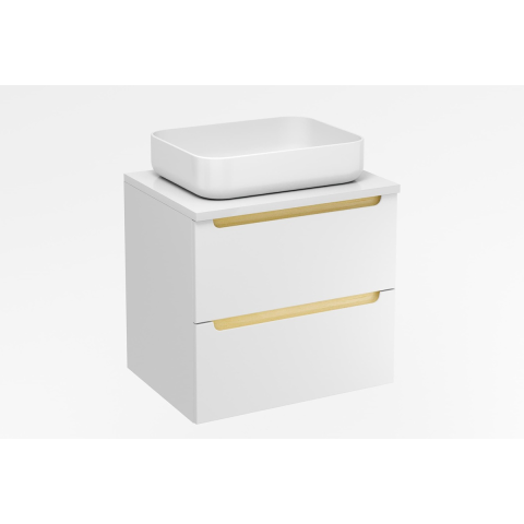 Függő fürdőszobaszekrény a mosdókagyló alatt STILLAF06007B fehér színű tányérral. Méret 60x60x45 cm. Elülső felület MDF lakkozott. Fiók kivágással a szifon számára.