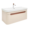 Függő fürdőszobaszekrény kerámia mosdókagylóval, homokbézs színben, matt kivitelben, méret 97,5x43x45 cm. Felület laminált.