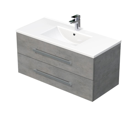 Függesztett fürdőszobaszekrény kerámia mosdókagylóval, betonutánzatból, matt kivitelben, mérete 100x53x46 cm. Felület laminált kivitelben.