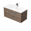 Függő fürdőszobaszekrény kerámia mosdókagylóval, tölgyfa wellington matt kivitelben, mérete 100x53x46 cm. Felület laminált.