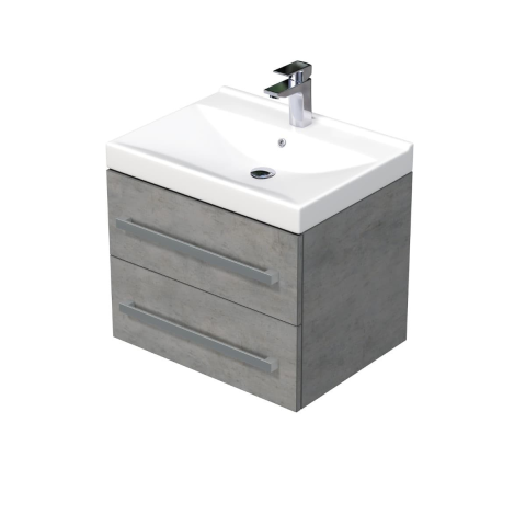 Függesztett fürdőszobaszekrény kerámia mosdókagylóval, betonutánzatból, matt kivitelben, méret 60x53x46 cm. Felület laminált kivitelben.