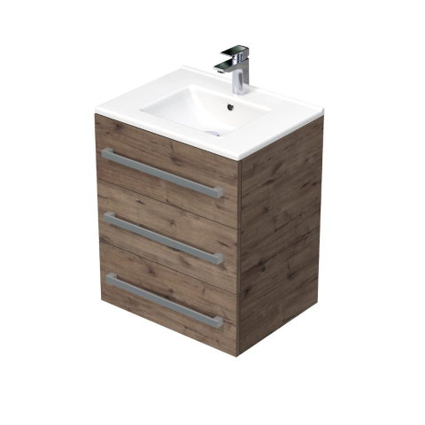 Függesztett fürdőszobaszekrény kerámia mosdókagylóval, tölgyfa Wellington matt kivitelben, méret 60x76,5x46 cm. Felület laminált kivitelben.