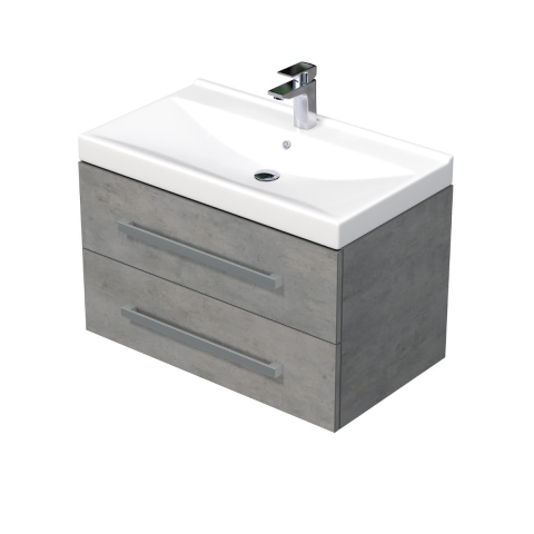 Függesztett fürdőszobaszekrény kerámia mosdókagylóval, betonutánzatból, matt kivitelben, mérete 80x53x46 cm. Felület laminált kivitelben.