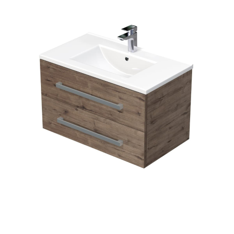 Felfüggesztett fürdőszobaszekrény kerámia mosdókagylóval, tölgyfa Wellington matt kivitelben, mérete 80x53x46 cm. Felület laminált.