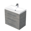 Felfüggesztett fürdőszobaszekrény kerámia mosdókagylóval, betonutánzatból, matt kivitelben, méretek 80x76,5x46 cm. Felület laminált kivitelben.