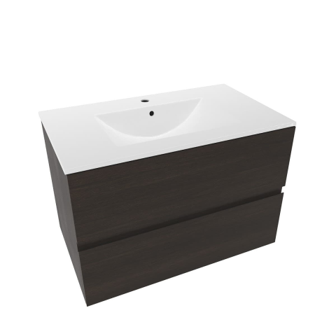 Függő fürdőszobaszekrény kerámia mosdókagylóval, sötét fa dekorban, matt kivitelben, méret 80x50x45,5 cm. Felület laminált.