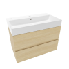Függő fürdőszobaszekrény kerámia mosdókagylóval, világos fa dekorban, matt kivitelben, méret 80x50x45,5 cm. Felület laminált.