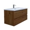 Felakasztható fürdőszobaszekrény mosdóval öntött márványból diófa dekorban matt felülettel mérete 99x50x45 cm. A felület lamino kivitelben.