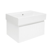 Függő fürdőszobaszekrény kerámia mosdókagylóval, fehér színben, matt kivitelben, méret 58x30x44,8 cm. Fóliázott felület.