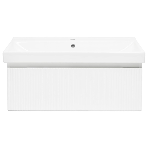 Függő fürdőszobaszekrény kerámia mosdókagylóval, fehér színben, matt kivitelben, mérete 98x30x44,8 cm. Fóliázott felület.