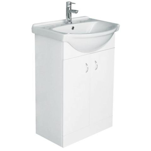 Álló fürdőszobaszekrény mosogatóval fehér színben fényes felülettel mérete 52x85x41,2 cm. Lakkozott felülettel.