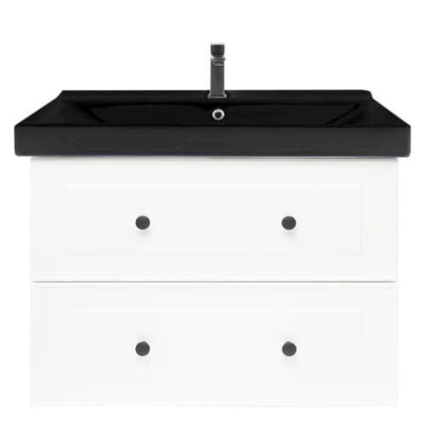 Felakasztható fürdőszobaszekrény kerámia mosdóval fehér színben fényes felülettel mérete 80x53x46 cm. A felület fólia kivitelben.
