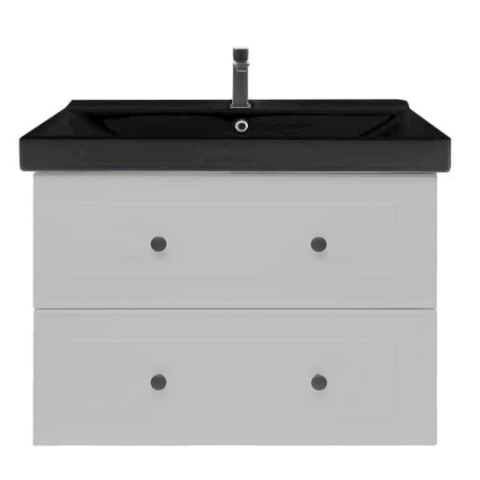 Felakasztható fürdőszobaszekrény kerámia mosdóval szürke színben matt felülettel mérete 80x53x46 cm. A felület fólia kivitelben.