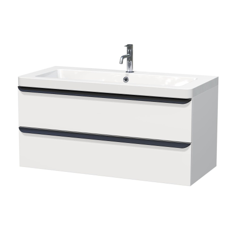 Felakasztható fürdőszobaszekrény mosogatóval fehér színben matt felülettel mérete 105x53x49 cm. Lakkozott felülettel, ujjlenyomat elleni kezeléssel. Teljes kihúzással és behúzással.