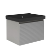Felakasztható fürdőszobaszekrény kerámia mosdóval szürke színben matt felülettel mérete 58x43x45 cm. A felület fólia kivitelben.