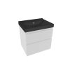 Felakasztható fürdőszobaszekrény kerámia mosdóval fehér színben fényes felülettel mérete 58x53x45 cm. A felület fólia kivitelben.